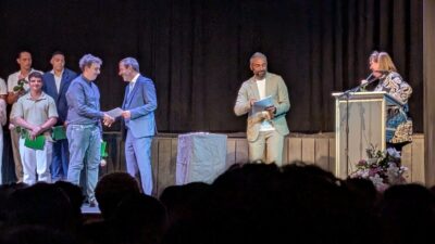 Boy not only successfully graduated from high school, he was singled out to get the biggest prize for the best grades in his class, and a special mention in his efforts and willingness to motivate the others in his class and his teachers.