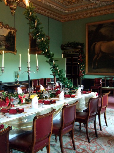 Inside Wimpole - main table setup for xmas dinner